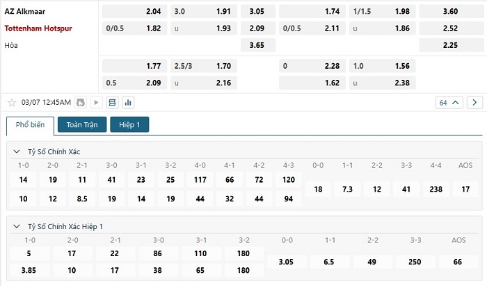 AZ Alkmaar đã từng phải nhận thất bại trước chính Tottenham tại vòng bảng vừa qua theo mốc kèo châu Âu đã cho thấy những khó khăn rất lớn của họ. Hiện tại với AZ Alkmaar dù có được những lợi thế nhất định nhưng xét về mặt phong độ gần đây của họ cũng không thực sự hiệu quả với 2 trận liên tiếp không biết mùi chiến thắng, bên phía Tottenham chắc chắn đây sẽ là sân chơi để họ thể hiện quyết tâm và hy vọng cạnh tranh danh hiệu do vậy mà có thể đặt niềm tin vào đội khách theo kèo châu Âu của trận sắp tới.