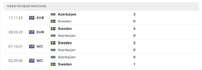 Lịch sử đối đầu của Azerbaijan vs Thụy Điển