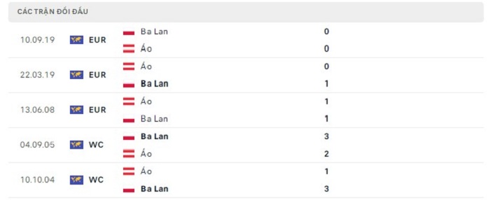 Bảng tỷ lệ kèo bóng đá trận đấu Ba Lan vs Áo