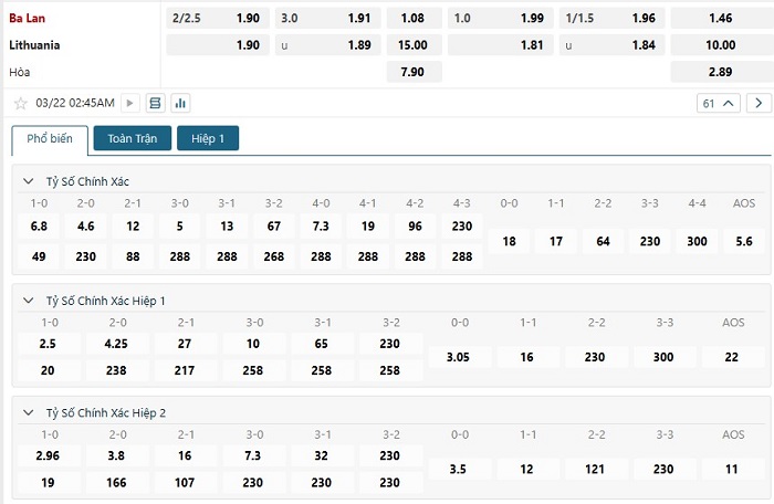 - Ba Lan 2-0 Lithuania (H1)