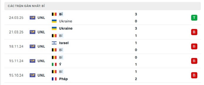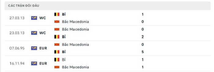 Phong độ gần đây Bắc Macedonia vs Bỉ
