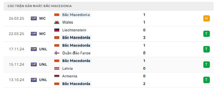 • Phong độ Bắc Macedonia