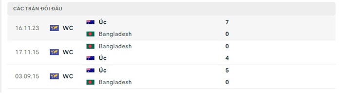 Lịch sử đối đầu của Bangladesh vs Úc