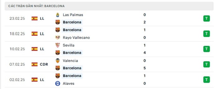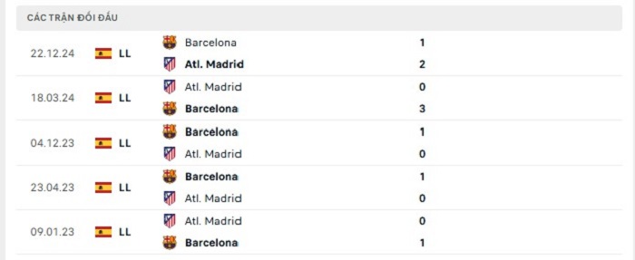 Phong độ gần đây Barcelona vs Atletico Madrid