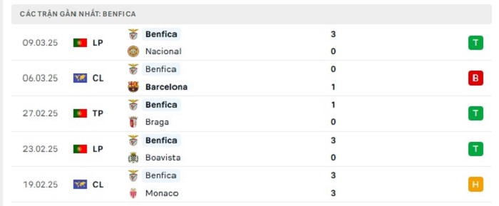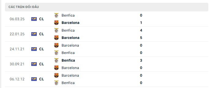 Bảng bóng đá trận đấu Barcelona vs Benfica