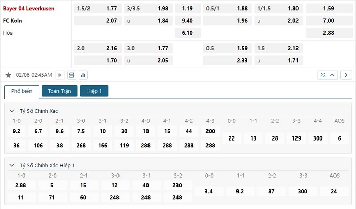 Soi kèo tỷ số Bayer Leverkusen vs FC Koln