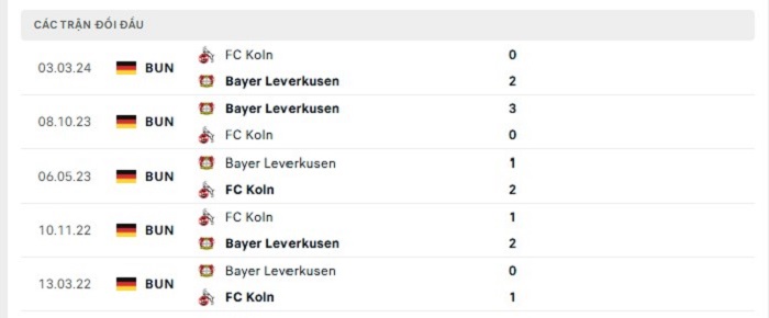 Bảng bóng đá trận đấu Bayer Leverkusen vs FC Koln