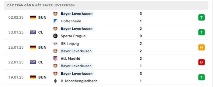 - Phong độ Bayer Leverkusen