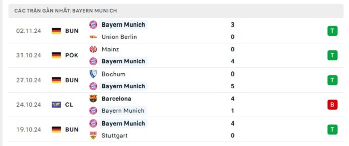 - Phong độ Bayern Munich