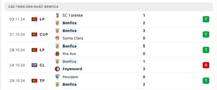 - Phong độ Benfica