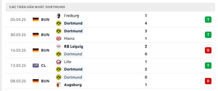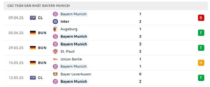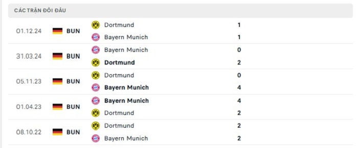 Phong độ gần đây Bayern Munich vs Borussia Dortmund