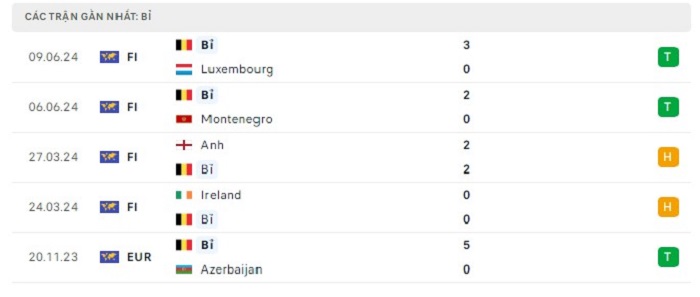 Phong độ gần đây Bỉ vs Slovakia