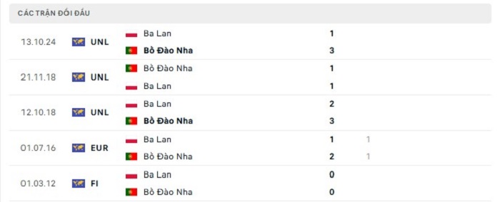 Lịch sử đối đầu của Bồ Đào Nha vs Ba Lan
