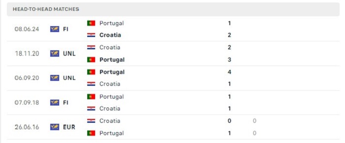 Lịch sử đối đầu của Bồ Đào Nha vs Croatia