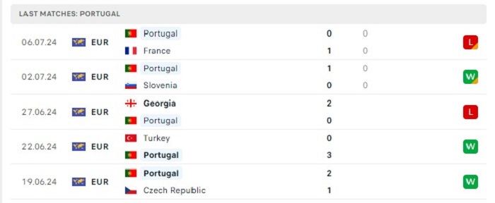 Phong độ gần đây Bồ Đào Nha vs Croatia