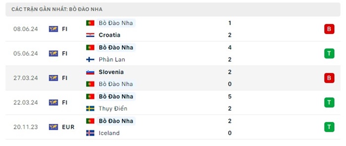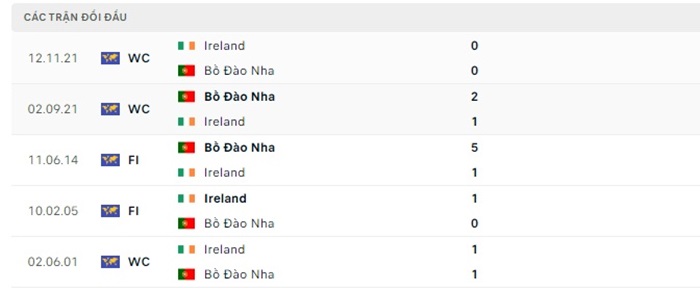 Phong độ gần đây Bồ Đào Nha vs Ireland