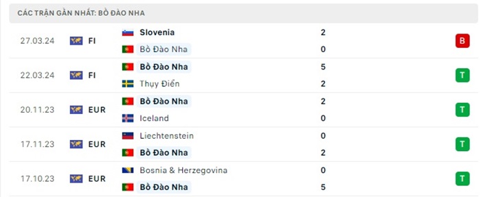 Phong độ gần đây Bồ Đào Nha vs Phần Lan