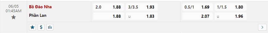 Bảng tỷ lệ kèo bóng đá trận đấu Bồ Đào Nha vs Phần Lan
