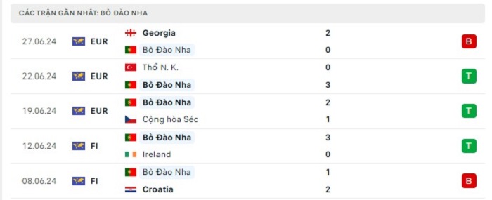 Phong độ gần đây Bồ Đào Nha vs Slovenia