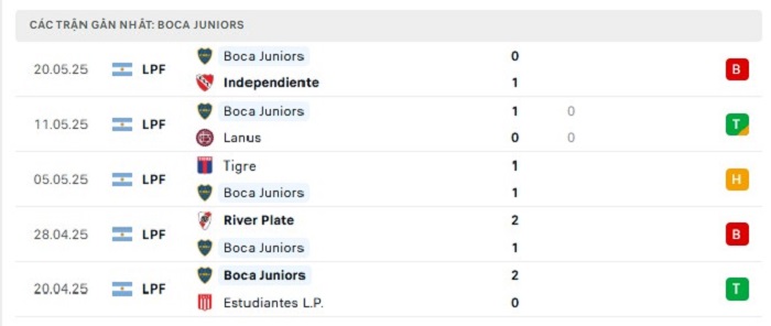 • Phong độ Boca Juniors