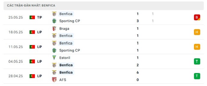 • Phong độ Benfica