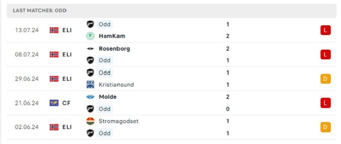 Phong độ gần đây Bodo Glimt vs Odd BK