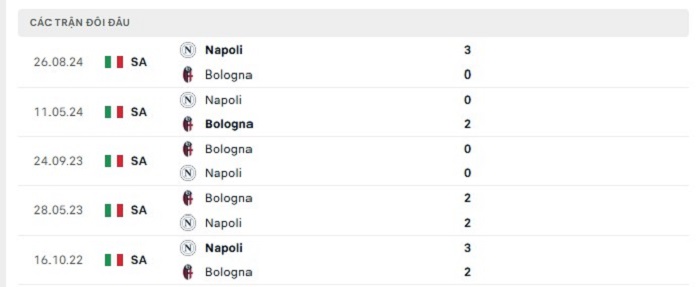Phong độ gần đây Bologna vs Napoli