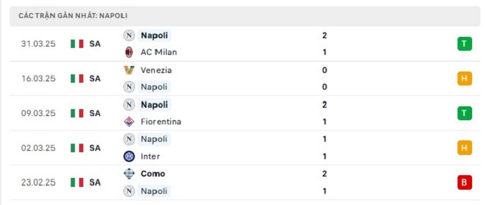 - Phong độ Napoli
