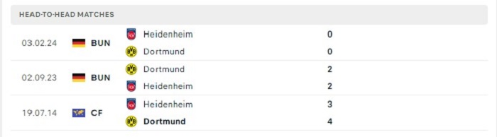 Thống kê cí thể thấy được 2 trong 3 lần gặp nhau giữa Borussia Dortmund và Heidenheim đã xuất hiện khá nhiều bàn thắng ghi được cho cả hai đội, điều này cũng có thể thấy được lối chơi khá phóng thoáng mà cả hai đội đã tạo nên, hàng công của Heidenheim thời gian qua cũng đang thi đấu tốt giúp các trận đấu có sự góp mặt của họ có tỷ lệ ghi bàn tương đối cao, bởi vậy mà tỷ số của trận đấu sắp tới của hai đội hoàn toàn có thể tiếp tục xuất hiện nhiều.