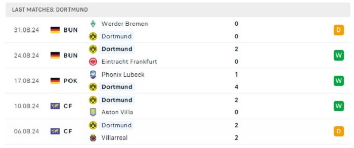 Phong độ gần đây Borussia Dortmund vs Heidenheim