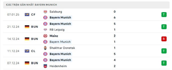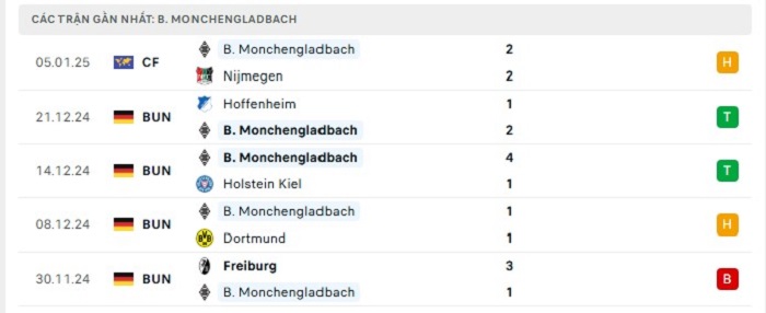 Phong độ gần đây Borussia M’gladbach vs Bayern Munich