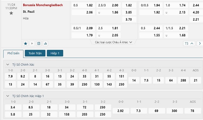 Soi kèo tỷ số Borussia M’gladbach vs St. Pauli