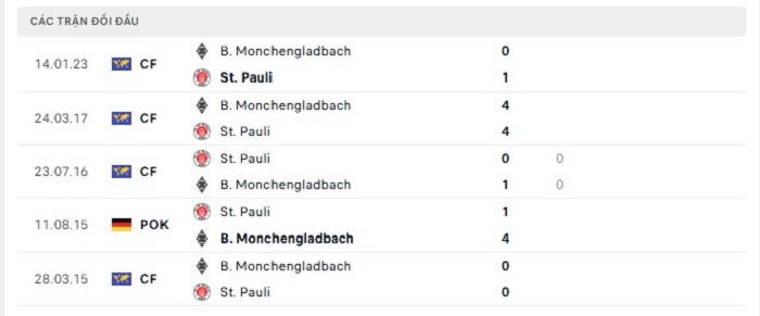 Lịch sử đối đầu của Borussia M’gladbach vs St. Pauli