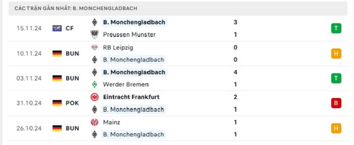 Phong độ gần đây Borussia M’gladbach vs St. Pauli