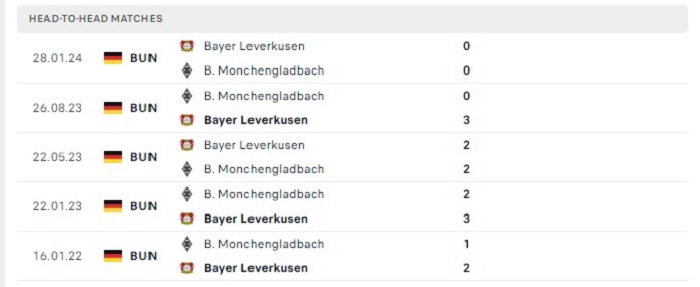 Lịch sử đối đầu của Borussia Monchengladbach vs Bayer  Leverkusen