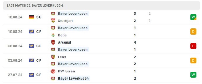 Bayer  Leverkusen: Hradecky, Tapsoba, Tah, Hincapie, Frimpong, Xhaka, Andrich, Grimaldo, Wirtz, Adli, Boniface.