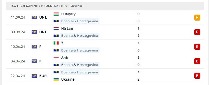 - Phong độ Bosnia & Herzegovina