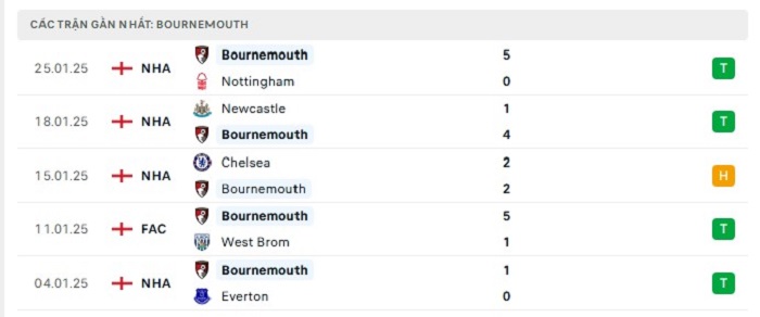 - Phong độ Bournemouth
