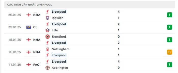 - Phong độ Liverpool
