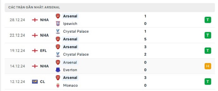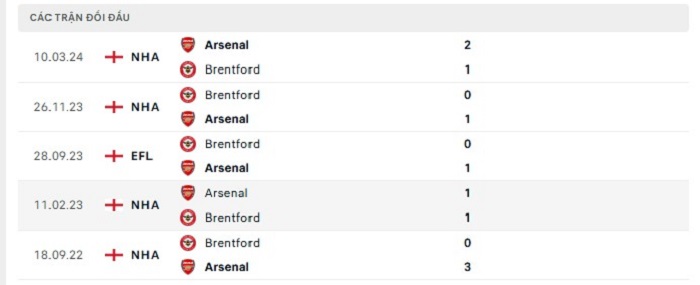 Bảng bóng đá trận đấu Brentford vs Arsenal