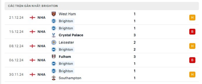 Phong độ gần đây Brighton vs Brentford