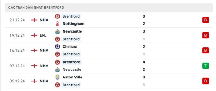 - Phong độ Brentford