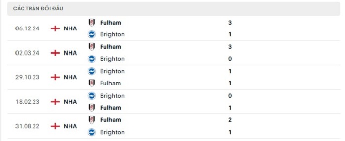 Trong quá khứ Brighton từng gặp không ít những khó khăn trước Fulham, bằng chứng cụ thể là họ chưa thể thắng tại 10 lần gặp nhau trước đây khi chỉ có được 4 trận hoà kèo châu Âu và có tới 6 lần phải nếm mùi thất bại. Mùa này trên sân nhà của mình Brighton vẫn thể hiện tốt với chỉ 2 lần thất bại trong khi thắng 5 và hoà 6 theo kèo châu Âu, do vậy mà khả năng bất phân thắng bại ở lần gặp nhau sắp tới đây của hai đội cũng là điều có thể hiểu được.
