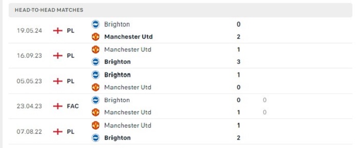 Lịch sử đối đầu của Brighton vs Manchester United