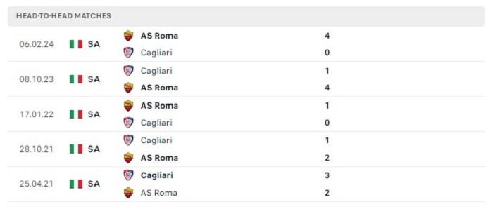 Quá khứ cũng không hề đứng về phía Cagliari trong những lần gặp nhau trước đây của hai đội, thậm chí là ngay cả sân nhà của Cagliari họ cũng không có được nhiều kết quả tốt trước AS Roma, bằng chứng chính là 10 lần gặp nhau gần đây đội chủ nhà chỉ thắng kèo châu Âu được vỏn vẹn 1 trận đấu trong khi để thua tới 7 trước đối thủ này, với kết quả này cũng đã phần nào phản ánh về sự chênh lệch về mặt chuyên môn của hai đội, do đó tin soi kèo nhận định khả năng AS Roma có được một chiến thắng theo kèo châu Âu của trận đấu cũng là trong tầm tay của họ.