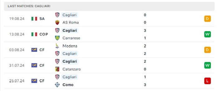 Phong độ gần đây Cagliari vs Como