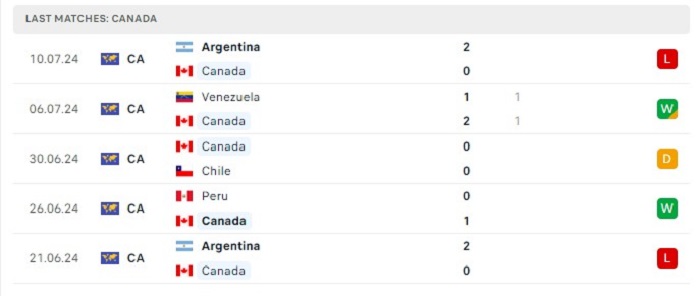 Phong độ gần đây Canada vs Uruguay