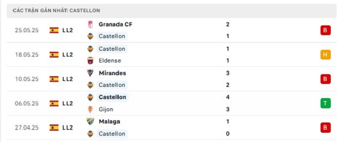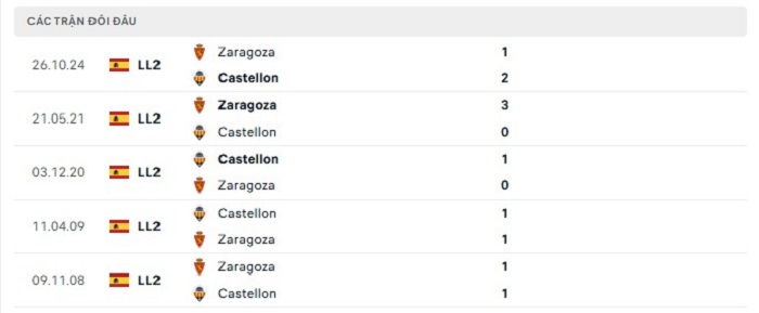 Lịch sử đối đầu của Castellon vs Real Zaragoza