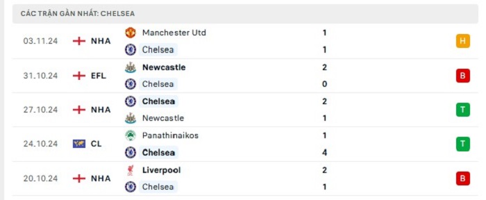 - Phong độ Chelsea
