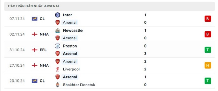 - Phong độ Arsenal